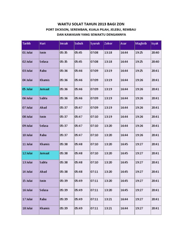 Waktu Solat Tahun 2013 Bagi Seremban Pdf